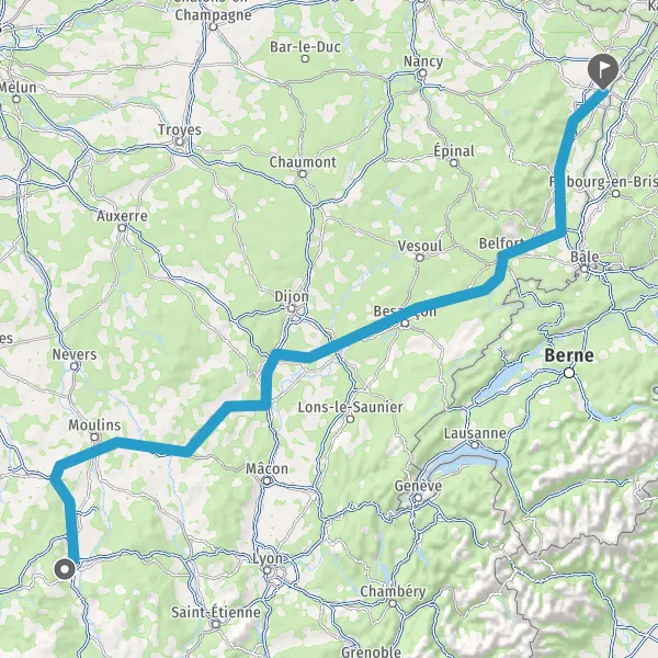 Prendre à droite et rejoindre A36. Continuer sur 225 kilomètres