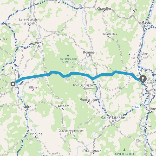 Prendre à droite et rejoindre A89. Continuer sur 22 kilomètres