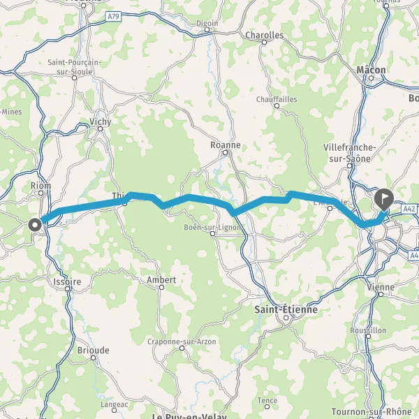 Prendre à droite et rejoindre A89. Continuer sur 56 kilomètres