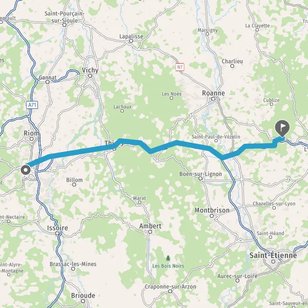 Prendre à droite et rejoindre A89. Continuer sur 4,8 kilomètres