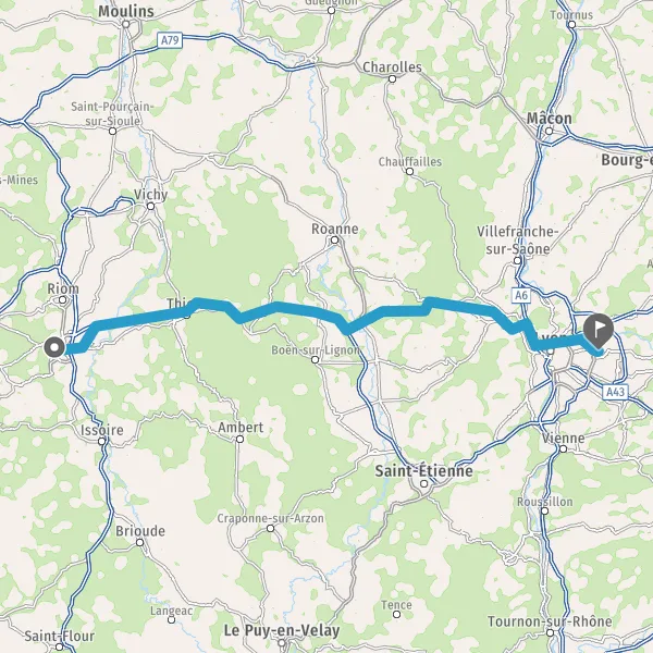 Continuer A89 E70 sur 77 kilomètres