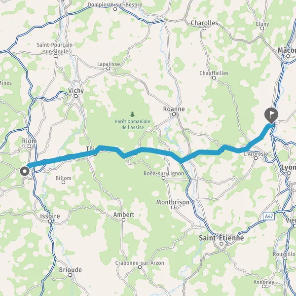 Prendre à droite et rejoindre A89. Continuer sur 49 kilomètres