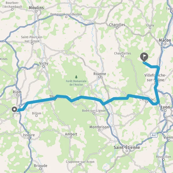 Continuer A89 E70 sur 77 kilomètres