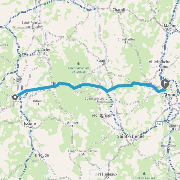 Prendre à droite et rejoindre A89. Continuer sur 56 kilomètres