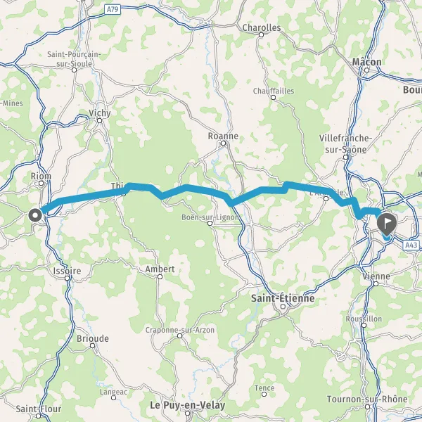 Prendre à droite et rejoindre A89. Continuer sur 59 kilomètres