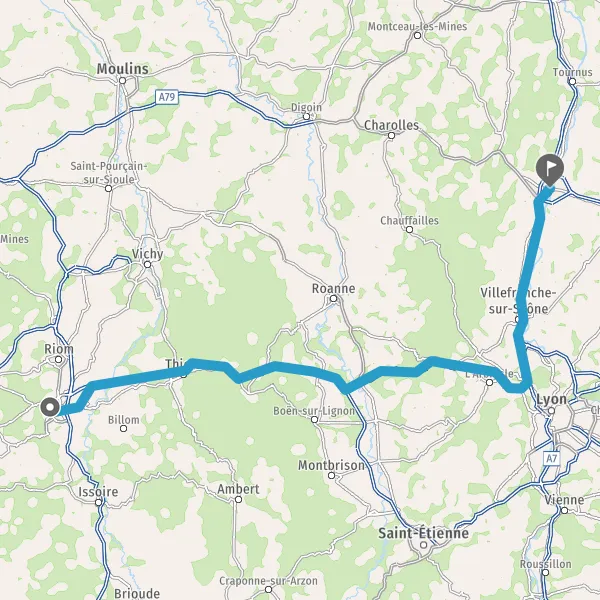 Prendre à droite et rejoindre A89. Continuer sur 59 kilomètres
