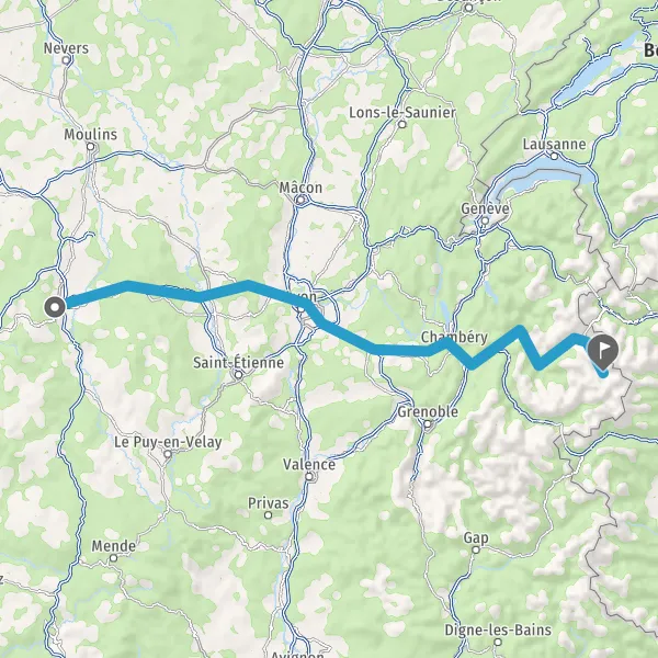 Prendre à droite et rejoindre A43 E711 E70. Continuer sur 21 kilomètres