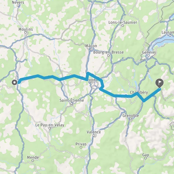 Prendre à droite et rejoindre A43. Continuer sur 19 kilomètres
