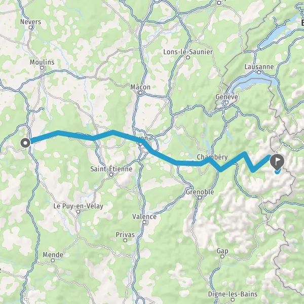 Prendre à droite et rejoindre A43. Continuer sur 19 kilomètres