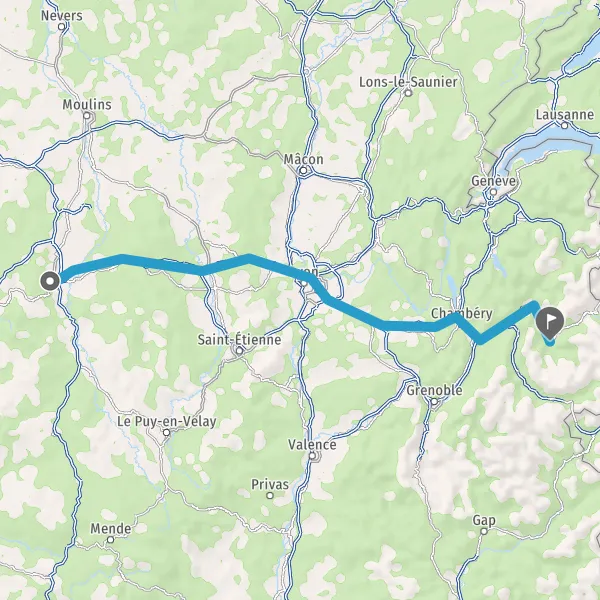Prendre à droite et rejoindre A43. Continuer sur 19 kilomètres