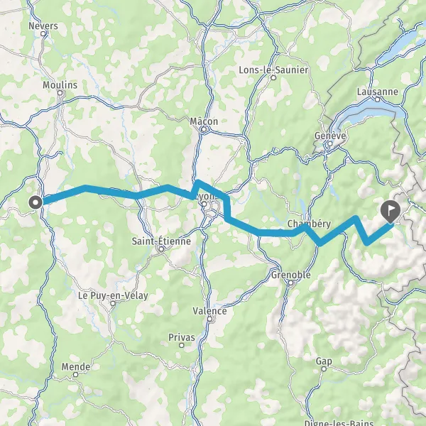 Prendre à droite et rejoindre A43. Continuer sur 19 kilomètres