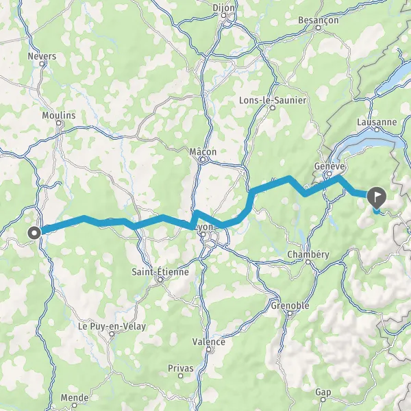 Continuer A89 E70 sur 77 kilomètres