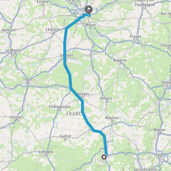 Prendre à droite et rejoindre A89 A71 E11 E70. Continuer sur 285 kilomètres
