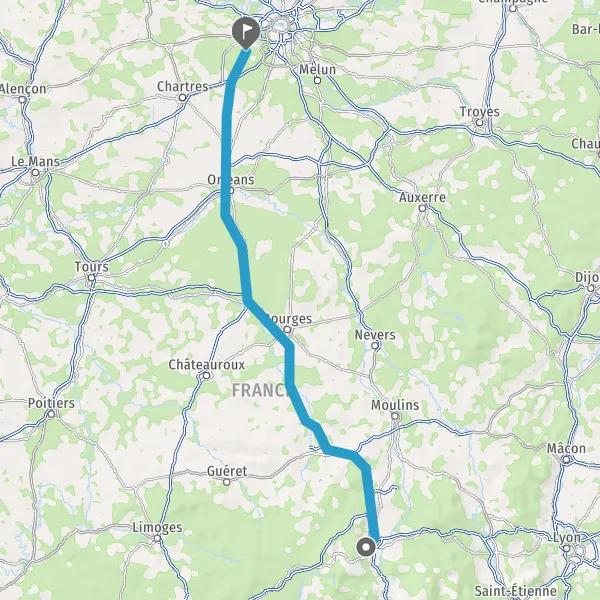 Prendre à droite et rejoindre A89 A71 E11 E70. Continuer sur 285 kilomètres