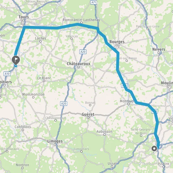 Prendre à droite et rejoindre A89 A71 E11 E70. Continuer sur 212 kilomètres