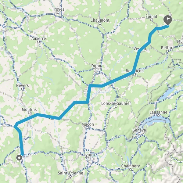 Prendre à droite et rejoindre A36. Continuer sur 92 kilomètres