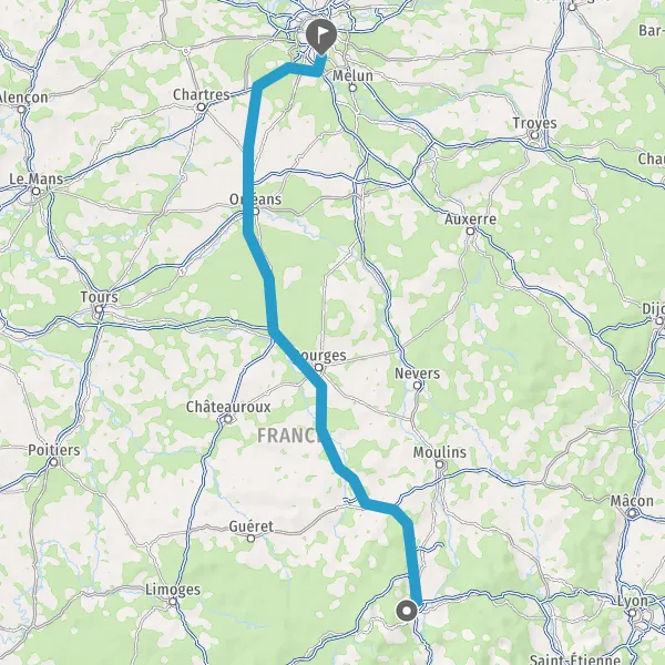 Prendre à droite et rejoindre A89 A71 E11 E70. Continuer sur 285 kilomètres