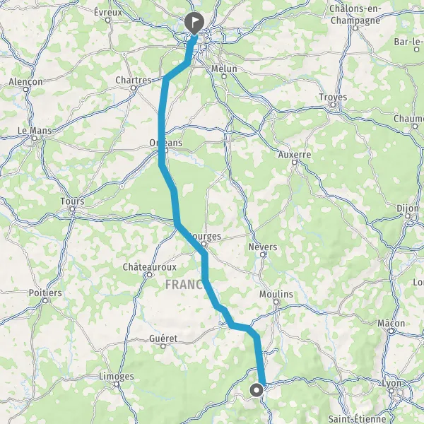 Prendre à droite et rejoindre A89 A71 E11 E70. Continuer sur 285 kilomètres