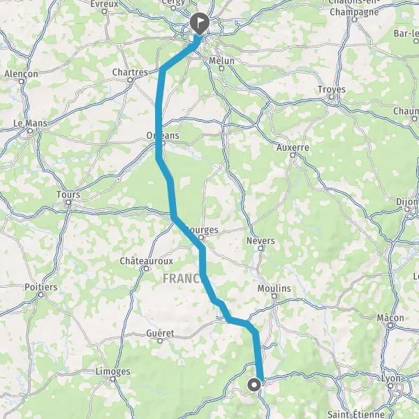 Prendre à droite et rejoindre A89 A71 E11 E70. Continuer sur 285 kilomètres