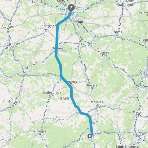 Prendre à droite et rejoindre A89 A71 E11 E70. Continuer sur 285 kilomètres