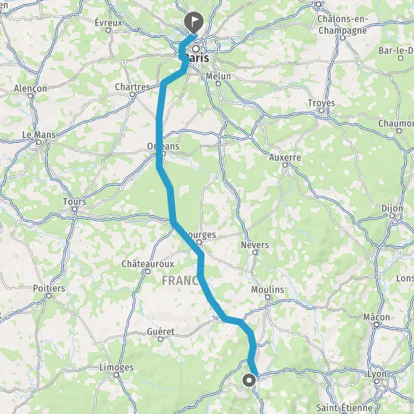 Prendre à droite et rejoindre A89 A71 E11 E70. Continuer sur 285 kilomètres