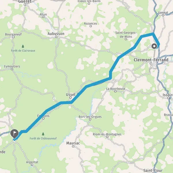 Prendre à droite et rejoindre A89 E70. Continuer sur 135 kilomètres