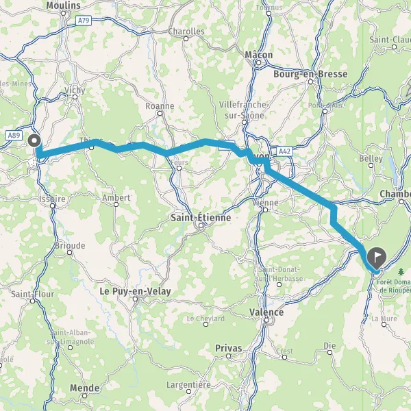 Prendre à droite et rejoindre A89 E70. Continuer sur 84 kilomètres