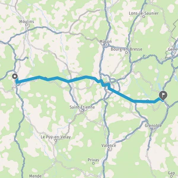 Prendre à droite et rejoindre A43 E711 E70. Continuer sur 21 kilomètres