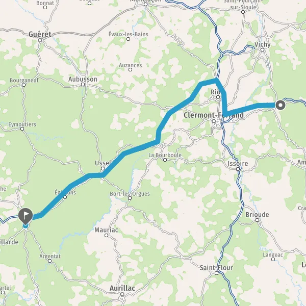 Prendre à droite et rejoindre A89 A71 E11 E70. Continuer sur 20 kilomètres