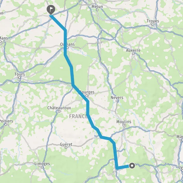 Prendre à droite et rejoindre A89 A71 E11 E70. Continuer sur 285 kilomètres