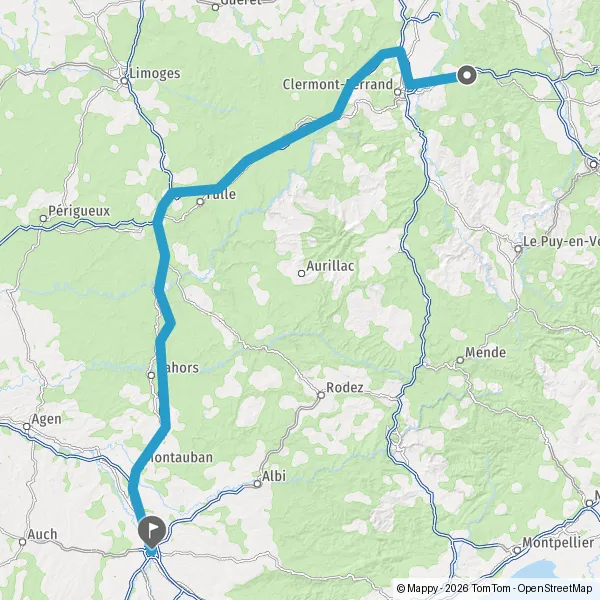 Prendre à droite et rejoindre A89 E70. Continuer sur 161 kilomètres