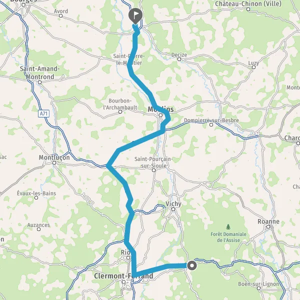 Prendre à droite et rejoindre A89 A71 E11 E70. Continuer sur 66 kilomètres