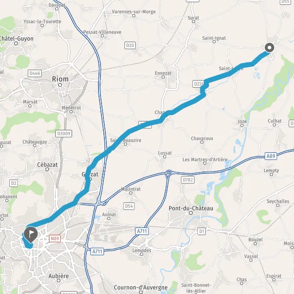 Tourner légèrement à droite sur D224d (Route de Riom) et continuer sur 1,8 kilomètre