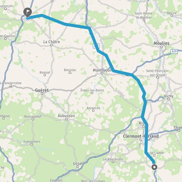 Prendre à droite et rejoindre A75 E11. Continuer sur 165 kilomètres