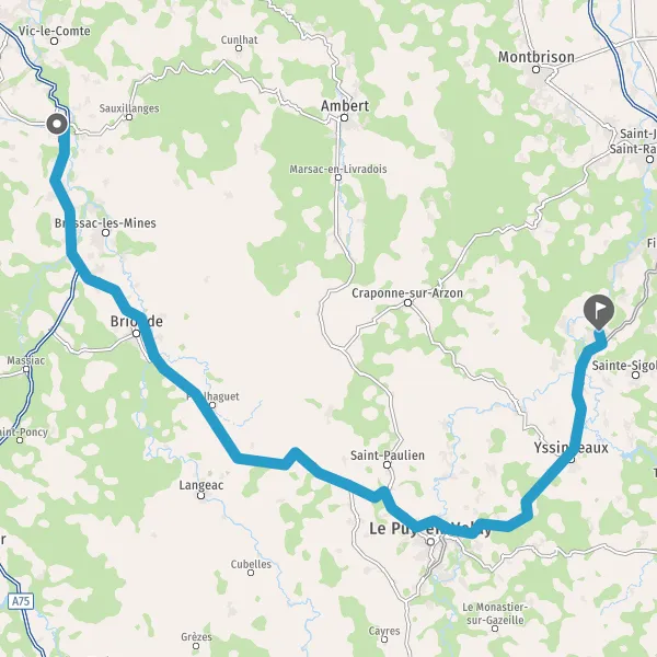 Prendre à droite et rejoindre A75 E11. Continuer sur 19 kilomètres