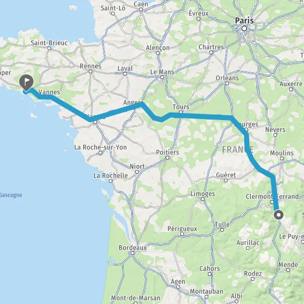 Prendre à droite et rejoindre A85 E604. Continuer sur 205 kilomètres