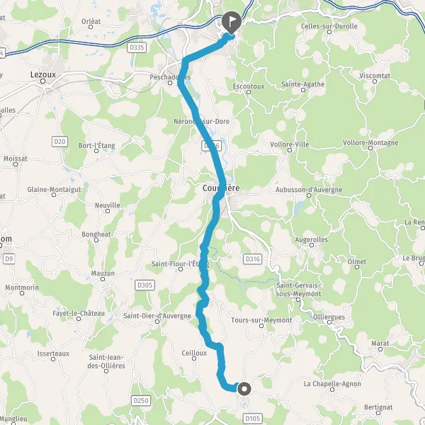 Au rond-point, prendre la 3ème sortie sur D906 (Avenue de Clermont) et continuer sur 9,2 kilomètres