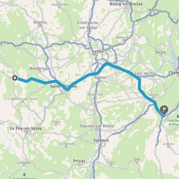 Prendre à droite et rejoindre A72 E70. Continuer sur 15 kilomètres