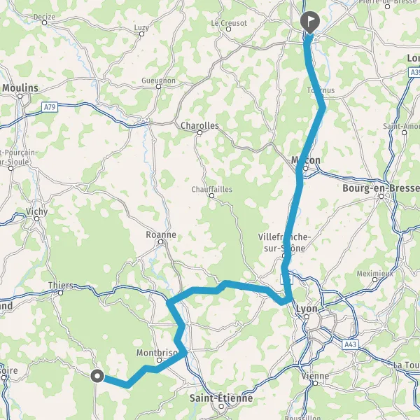 Continuer et rejoindre A72 E70. Continuer sur 23 kilomètres