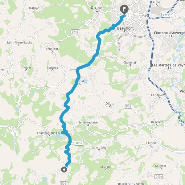 Au rond-point, prendre la 3ème sortie sur D5 (Route de Murol) et continuer sur 8,6 kilomètres