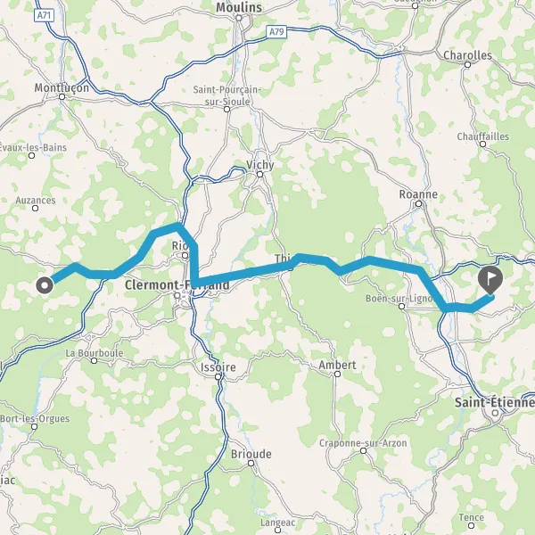 Prendre à droite et rejoindre A89 A71 E11 E70. Continuer sur 19 kilomètres