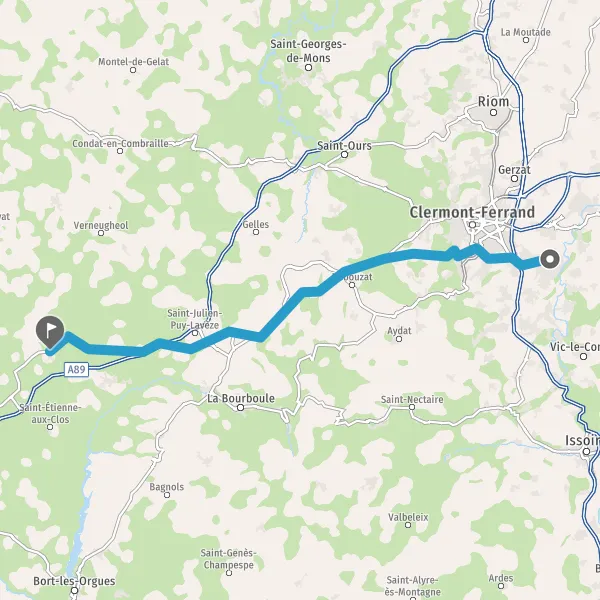 Prendre à droite et rejoindre A89. Continuer sur 750 mètres