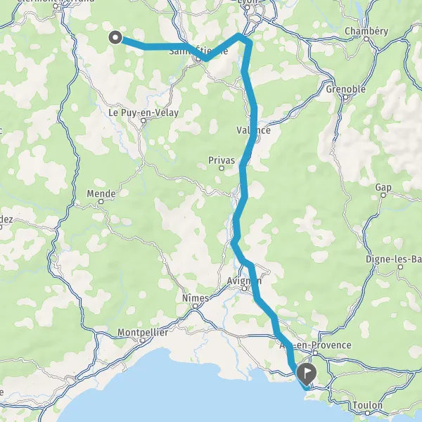 Prendre à droite et rejoindre A72 E70. Continuer sur 15 kilomètres