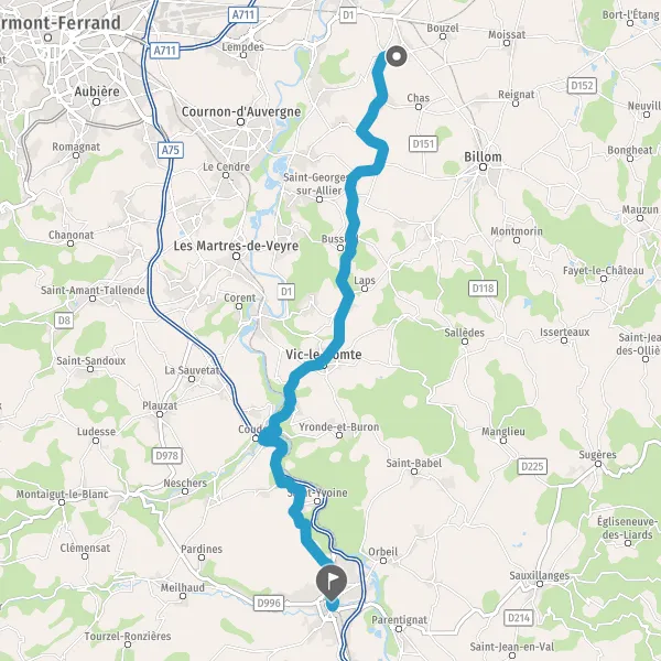 Tourner légèrement à droite sur D229 (Route de Vic-le-Comte) et continuer sur 2,7 kilomètres