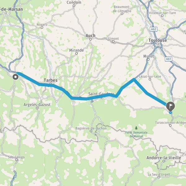 Prendre à droite et rejoindre A64 E80. Continuer sur 141 kilomètres