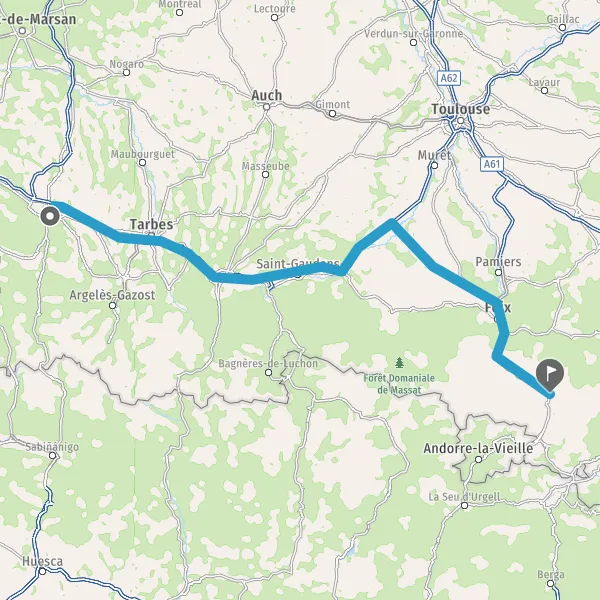 Prendre à droite et rejoindre A64 E80. Continuer sur 141 kilomètres