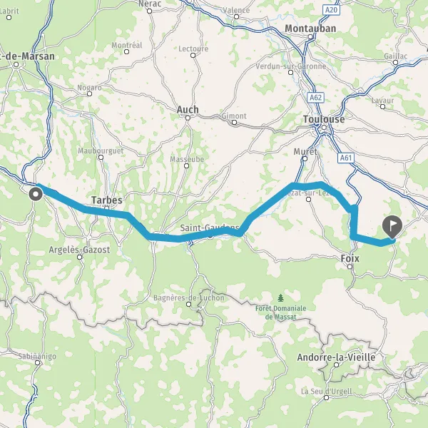 Prendre à droite et rejoindre A64 E80. Continuer sur 154 kilomètres