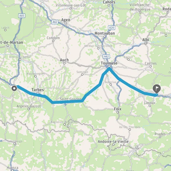 Prendre à droite et rejoindre A64 E80. Continuer sur 183 kilomètres