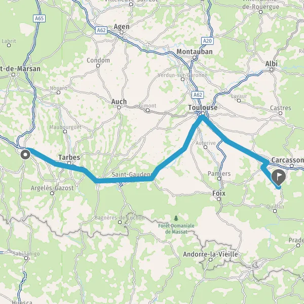 Prendre à droite et rejoindre A64 E80. Continuer sur 183 kilomètres