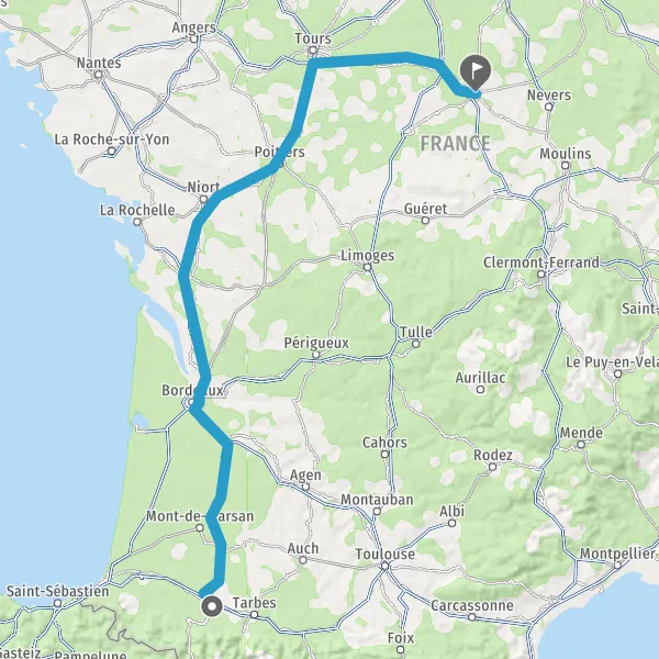 Prendre à droite et rejoindre A65. Continuer sur 150 kilomètres